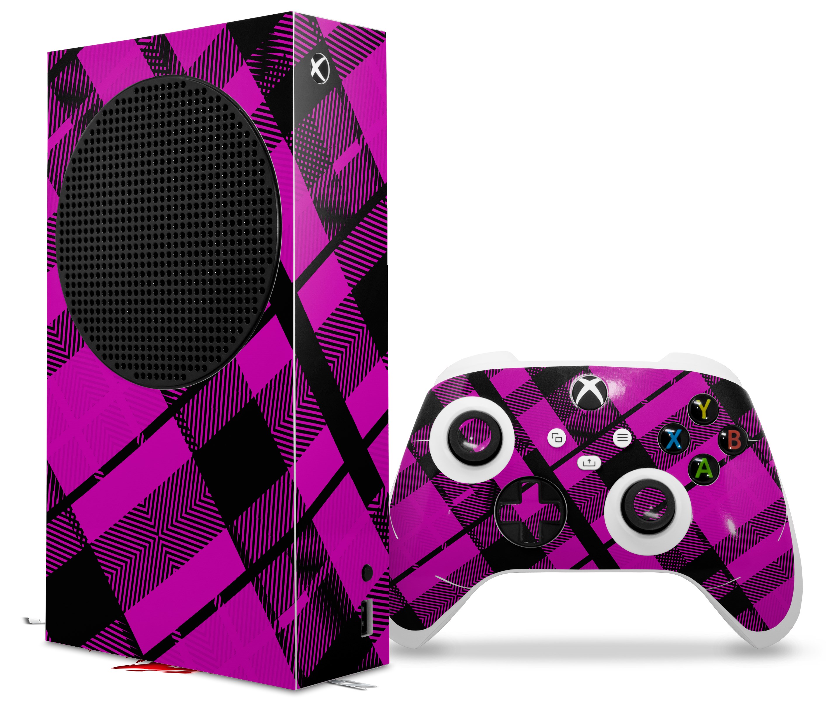 WraptorSkinz Skin Wrap compatible with the 2020 XBOX Series S Console and Controller Pink Plaid (XBOX NOT INCLUDED)