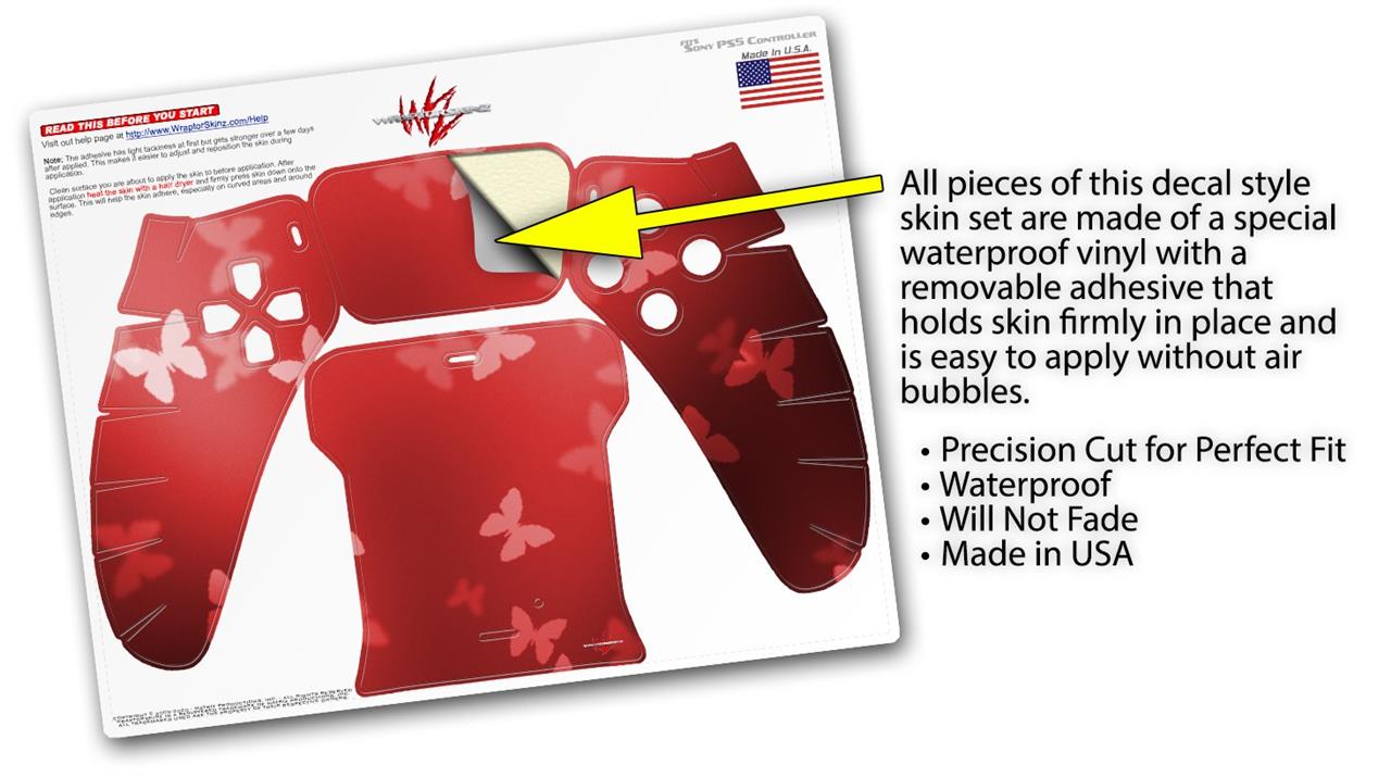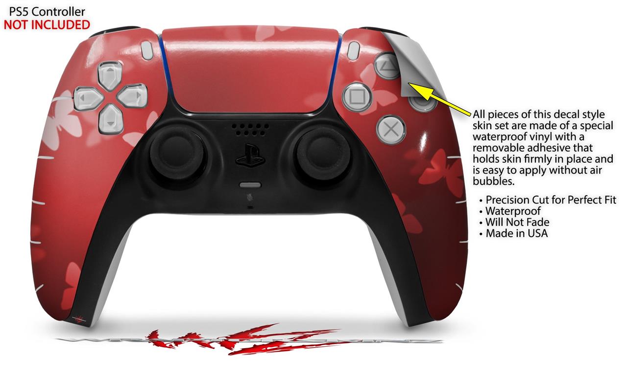 WraptorSkinz Skin Wrap compatible with the Sony PS5 DualSense Controller Bokeh Butterflies Red (CONTROLLER NOT INCLUDED)
