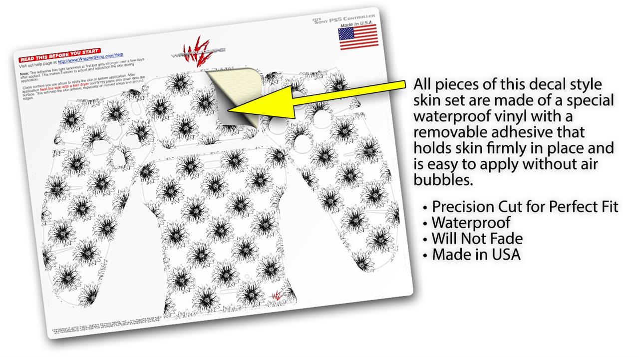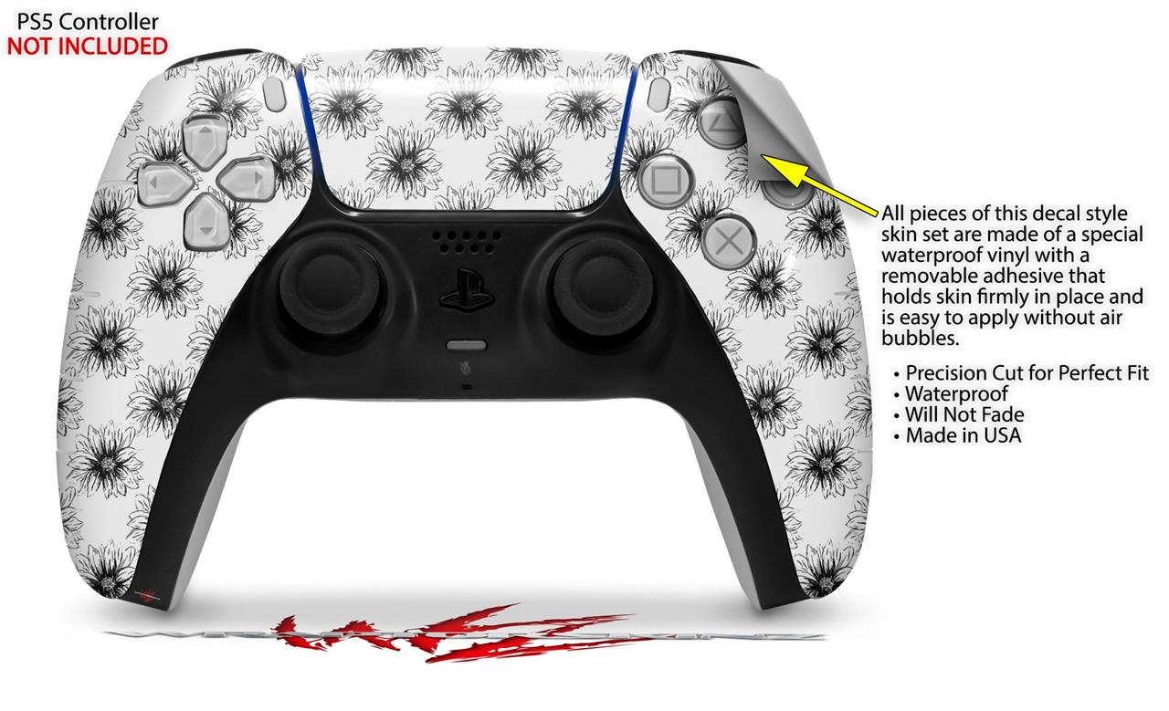 WraptorSkinz Skin Wrap compatible with the Sony PS5 DualSense Controller Kearas Daisies Black on White (CONTROLLER NOT INCLUDED)