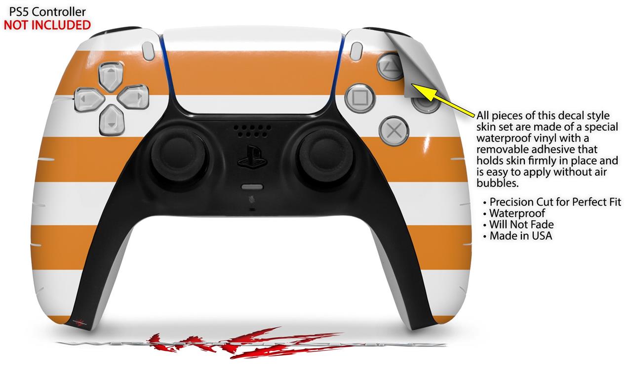 WraptorSkinz Skin Wrap compatible with the Sony PS5 DualSense Controller Psycho Stripes Orange and White (CONTROLLER NOT INCLUDED)