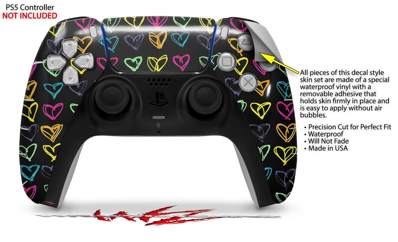 WraptorSkinz Skin Wrap compatible with the Sony PS5 DualSense Controller Kearas Hearts Black (CONTROLLER NOT INCLUDED)