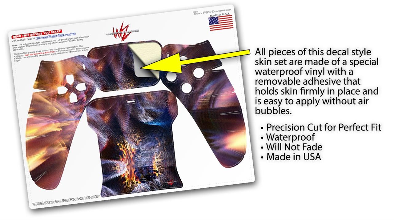 WraptorSkinz® skin wraps for the Sony Playstation 5 controller are printed using superb photo quality designs and vibrant colors printed with special fade resistant inks that last even in direct sun for years. WraptorSkinz are a composite of two layers of commercial grade materials. The bottom layer is a soft, flexible vinyl with a special removable adhesive that is easily positioned, applied without air bubbles. Next we print the bottom layer with UV protected, fade resistant inks that deliver superb photo quality designs in vibrant colors. Last, we bond a professional grade laminate over the entire skin adding a glossy protective finish. This product is not affiliated with or endorsed by Sony or the Playstation brand.