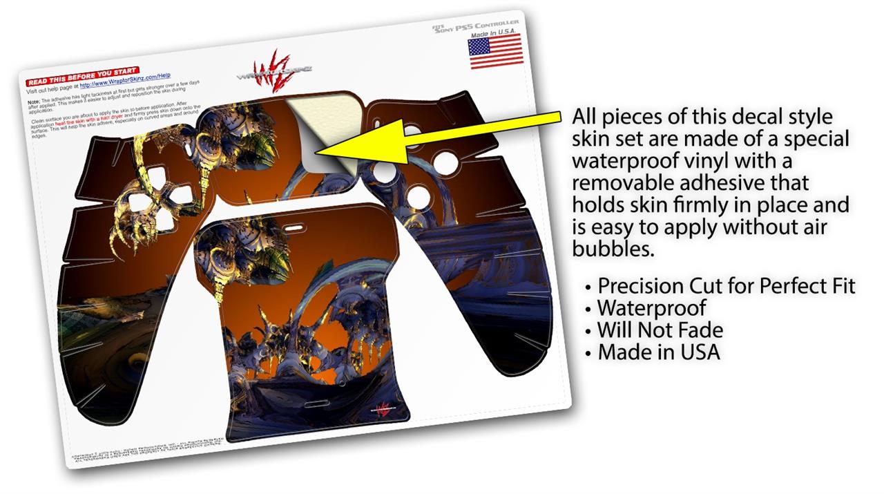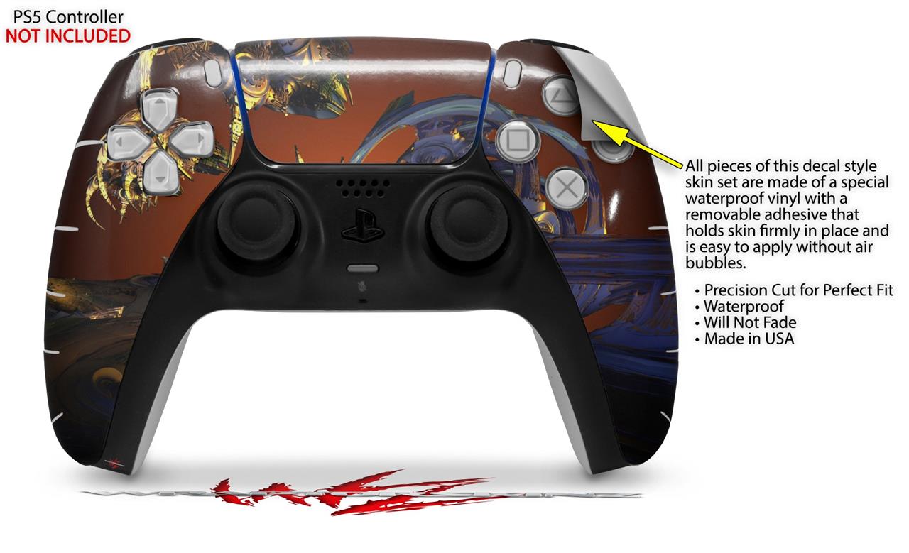 WraptorSkinz® skin wraps for the Sony Playstation 5 controller are printed using superb photo quality designs and vibrant colors printed with special fade resistant inks that last even in direct sun for years. WraptorSkinz are a composite of two layers of commercial grade materials. The bottom layer is a soft, flexible vinyl with a special removable adhesive that is easily positioned, applied without air bubbles. Next we print the bottom layer with UV protected, fade resistant inks that deliver superb photo quality designs in vibrant colors. Last, we bond a professional grade laminate over the entire skin adding a glossy protective finish. This product is not affiliated with or endorsed by Sony or the Playstation brand.