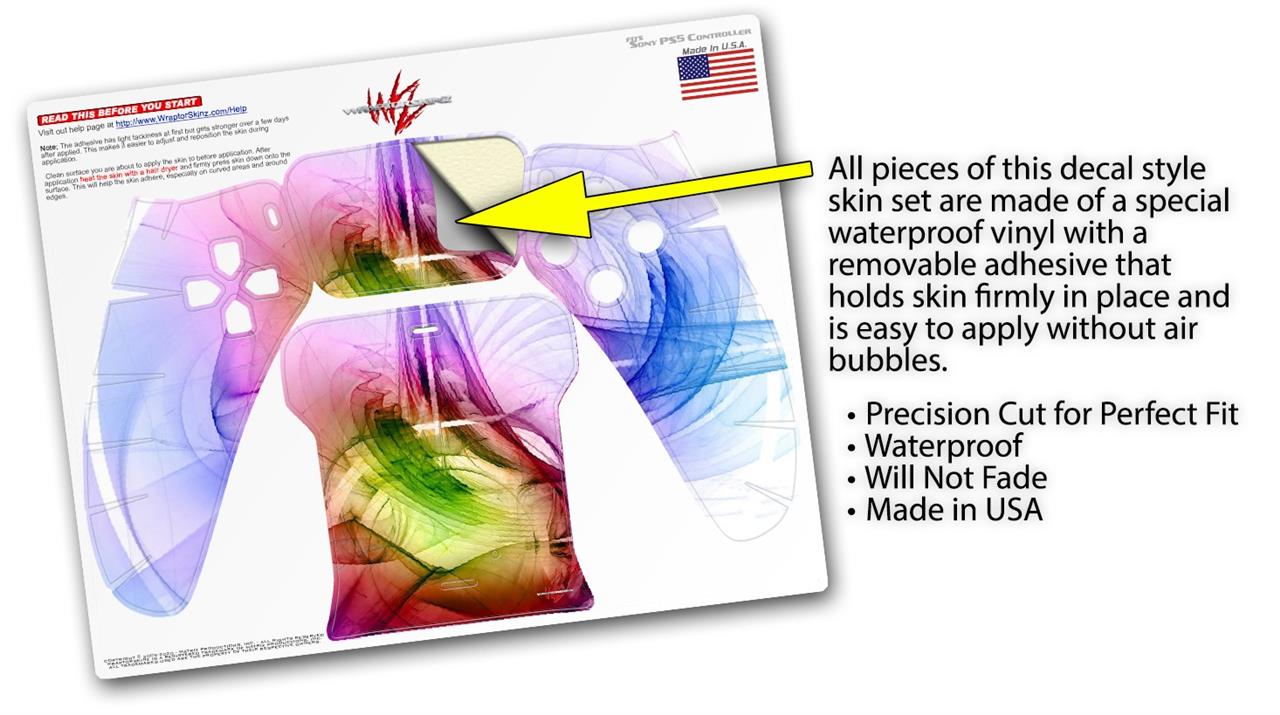 WraptorSkinz® skin wraps for the Sony Playstation 5 controller are printed using superb photo quality designs and vibrant colors printed with special fade resistant inks that last even in direct sun for years. WraptorSkinz are a composite of two layers of commercial grade materials. The bottom layer is a soft, flexible vinyl with a special removable adhesive that is easily positioned, applied without air bubbles. Next we print the bottom layer with UV protected, fade resistant inks that deliver superb photo quality designs in vibrant colors. Last, we bond a professional grade laminate over the entire skin adding a glossy protective finish. This product is not affiliated with or endorsed by Sony or the Playstation brand.
