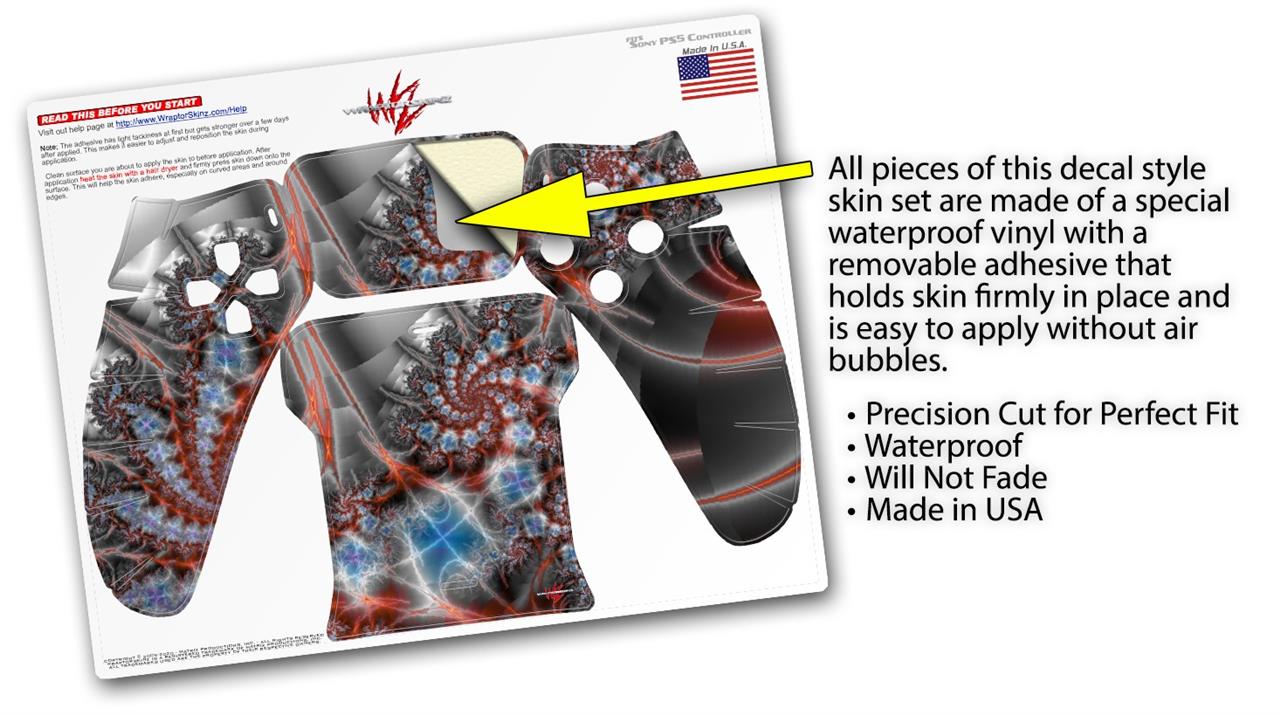 WraptorSkinz® skin wraps for the Sony Playstation 5 controller are printed using superb photo quality designs and vibrant colors printed with special fade resistant inks that last even in direct sun for years. WraptorSkinz are a composite of two layers of commercial grade materials. The bottom layer is a soft, flexible vinyl with a special removable adhesive that is easily positioned, applied without air bubbles. Next we print the bottom layer with UV protected, fade resistant inks that deliver superb photo quality designs in vibrant colors. Last, we bond a professional grade laminate over the entire skin adding a glossy protective finish. This product is not affiliated with or endorsed by Sony or the Playstation brand.