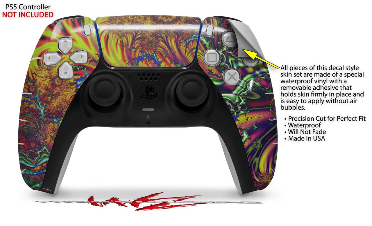 WraptorSkinz® skin wraps for the Sony Playstation 5 controller are printed using superb photo quality designs and vibrant colors printed with special fade resistant inks that last even in direct sun for years. WraptorSkinz are a composite of two layers of commercial grade materials. The bottom layer is a soft, flexible vinyl with a special removable adhesive that is easily positioned, applied without air bubbles. Next we print the bottom layer with UV protected, fade resistant inks that deliver superb photo quality designs in vibrant colors. Last, we bond a professional grade laminate over the entire skin adding a glossy protective finish. This product is not affiliated with or endorsed by Sony or the Playstation brand.