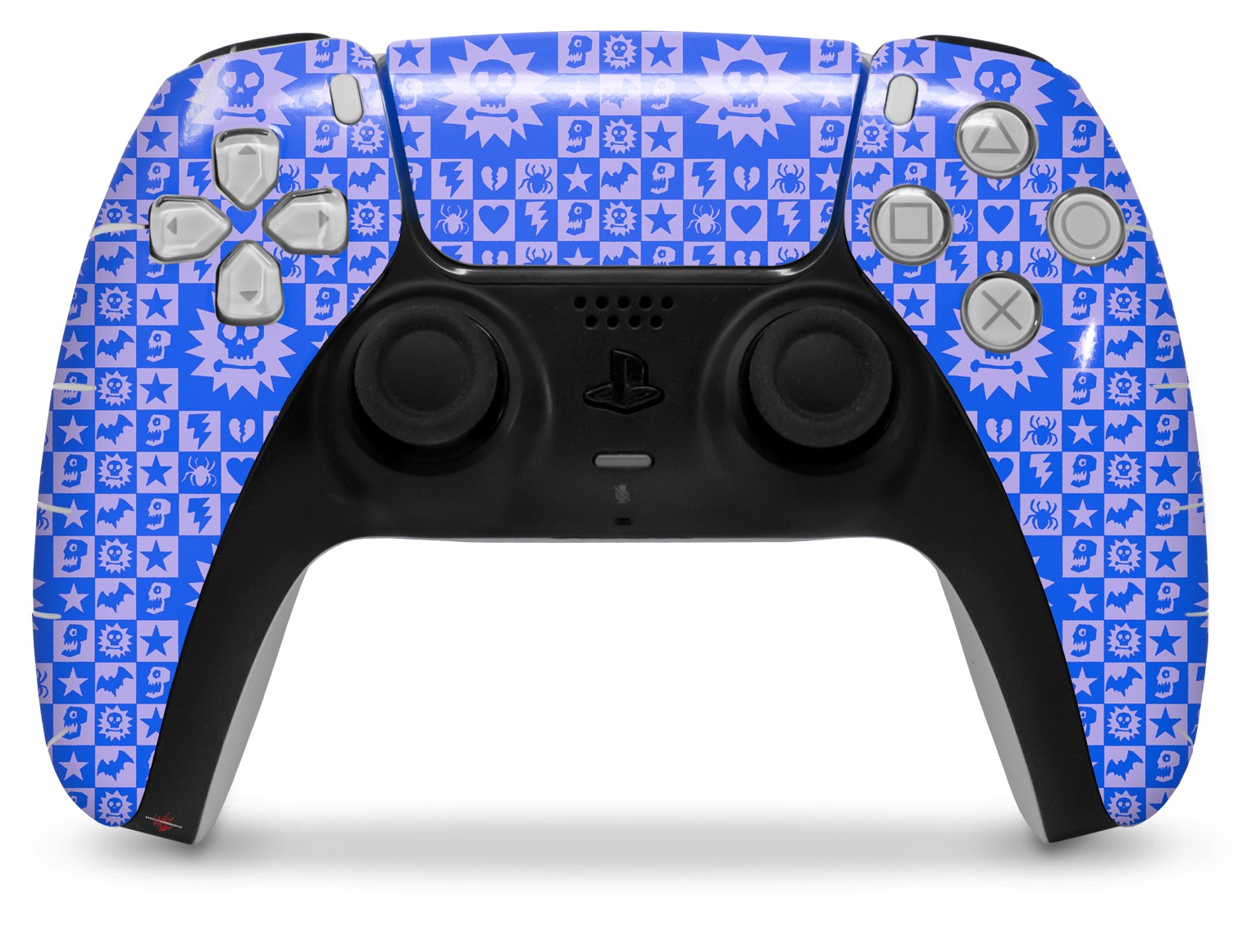 WraptorSkinz Skin Wrap compatible with the Sony PS5 DualSense Controller Gothic Punk Pattern Blue (CONTROLLER NOT INCLUDED)