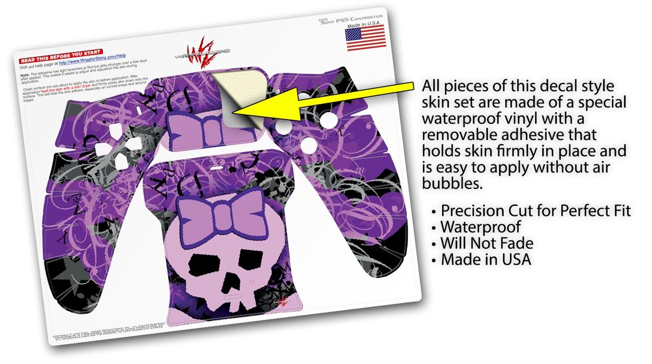 WraptorSkinz Skin Wrap compatible with the Sony PS5 DualSense Controller Purple Girly Skull (CONTROLLER NOT INCLUDED)