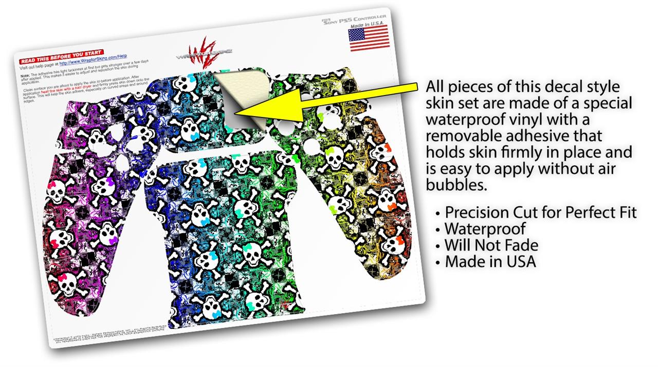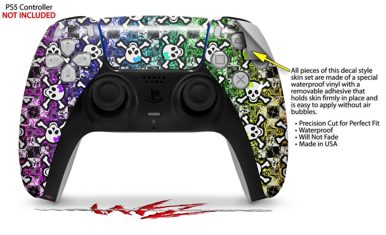 WraptorSkinz Skin Wrap compatible with the Sony PS5 DualSense Controller Splatter Girly Skull Rainbow (CONTROLLER NOT INCLUDED)