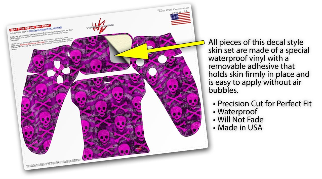 WraptorSkinz Skin Wrap compatible with the Sony PS5 DualSense Controller Pink Skull Bones (CONTROLLER NOT INCLUDED)
