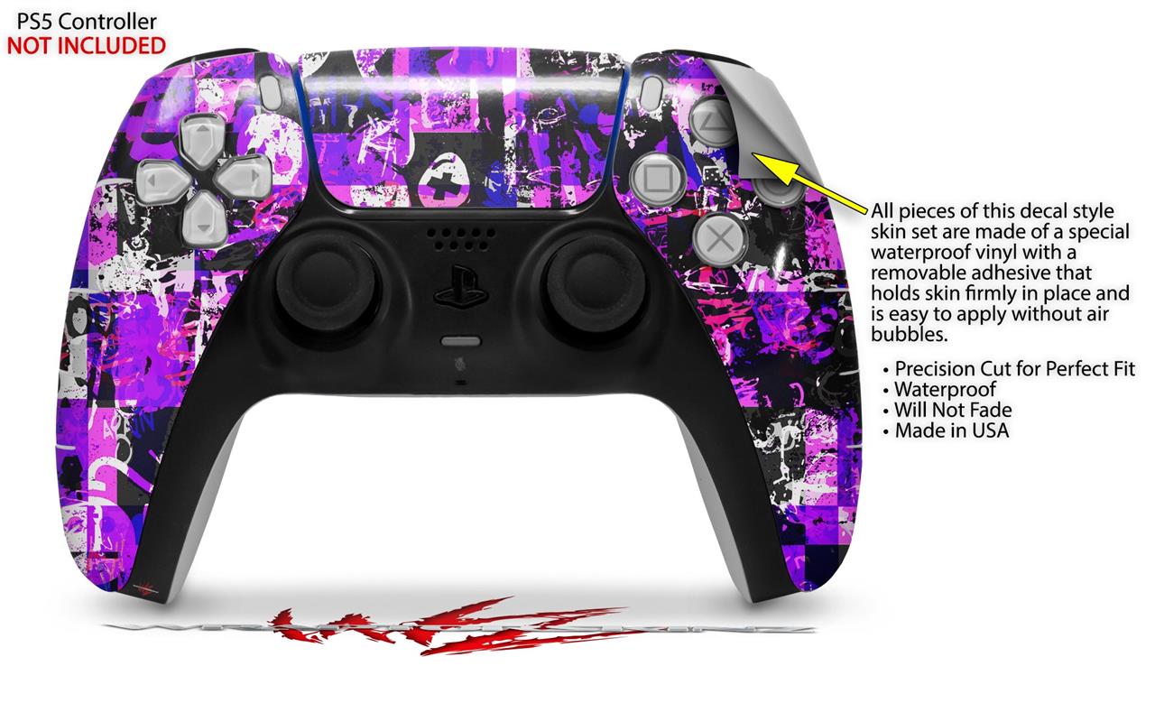 WraptorSkinz Skin Wrap compatible with the Sony PS5 DualSense Controller Purple Graffiti (CONTROLLER NOT INCLUDED)