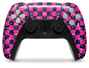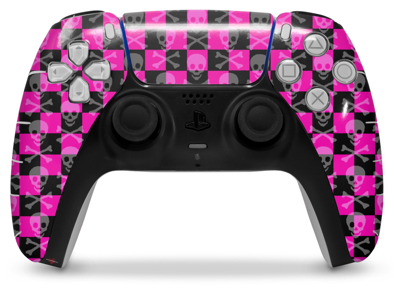 WraptorSkinz Skin Wrap compatible with the Sony PS5 DualSense Controller Skull and Crossbones Checkerboard (CONTROLLER NOT INCLUDED)