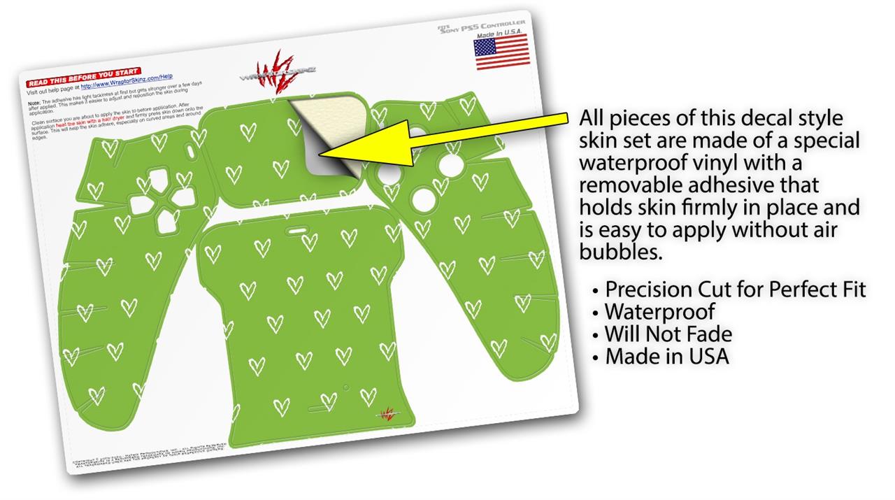 WraptorSkinz Skin Wrap compatible with the Sony PS5 DualSense Controller Hearts Green On White (CONTROLLER NOT INCLUDED)