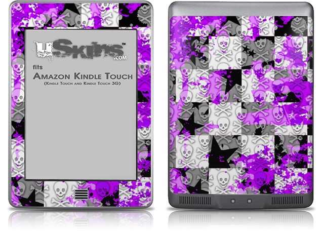 Purple Checker Skull Splatter - Decal Style Skin (fits Amazon Kindle Touch Skin)