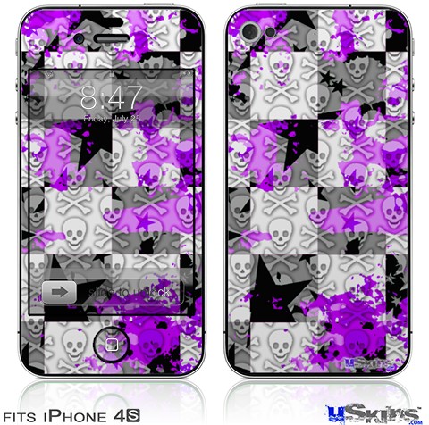 iPhone 4S Decal Style Vinyl Skin - Purple Checker Skull Splatter