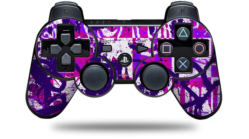 Sony PS3 Controller Decal Style Skin - Purple Checker Graffiti (CONTROLLER NOT INCLUDED)