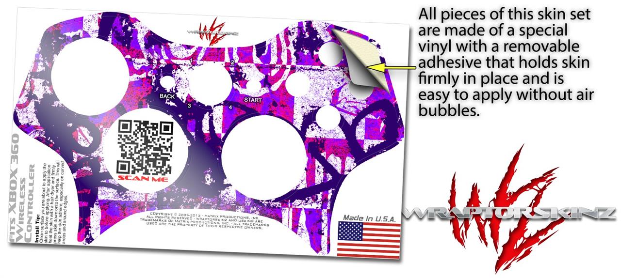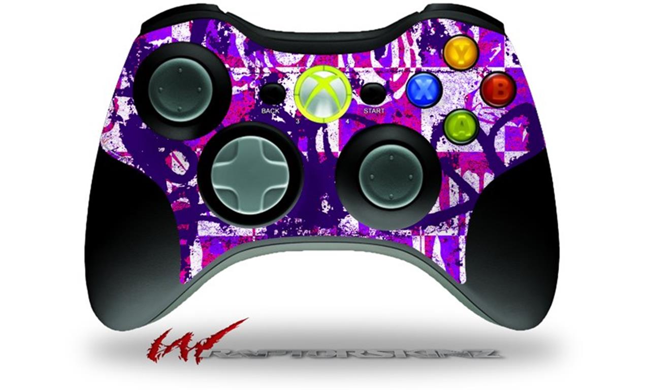 XBOX 360 Wireless Controller Decal Style Skin - Purple Checker Graffiti (CONTROLLER NOT INCLUDED)