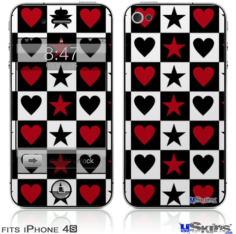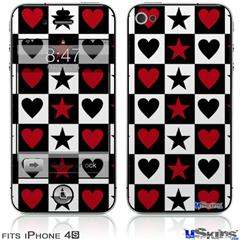 iPhone 4S Decal Style Vinyl Skin - Hearts and Stars Red