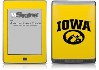Iowa Hawkeyes Tigerhawk Oval 01 Black on Gold - Decal Style Skin (fits Amazon Kindle Touch Skin)