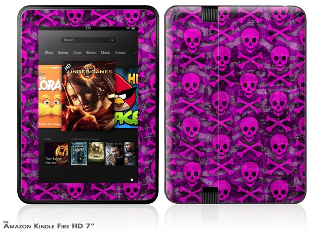 Pink Skull Bones Decal Style Skin fits 2012 Amazon Kindle Fire HD 7 inch
