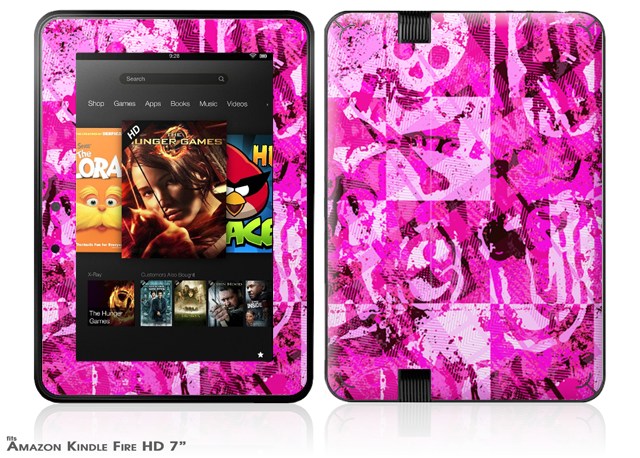 Pink Plaid Graffiti Decal Style Skin fits 2012 Amazon Kindle Fire HD 7 inch