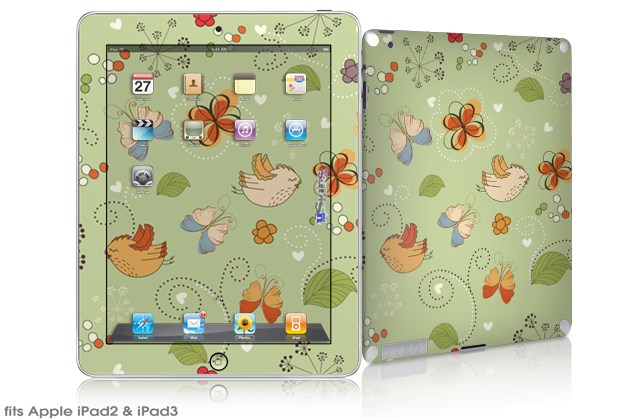 iPad Skin - Birds Butterflies and Flowers (fits iPad2 and iPad3)