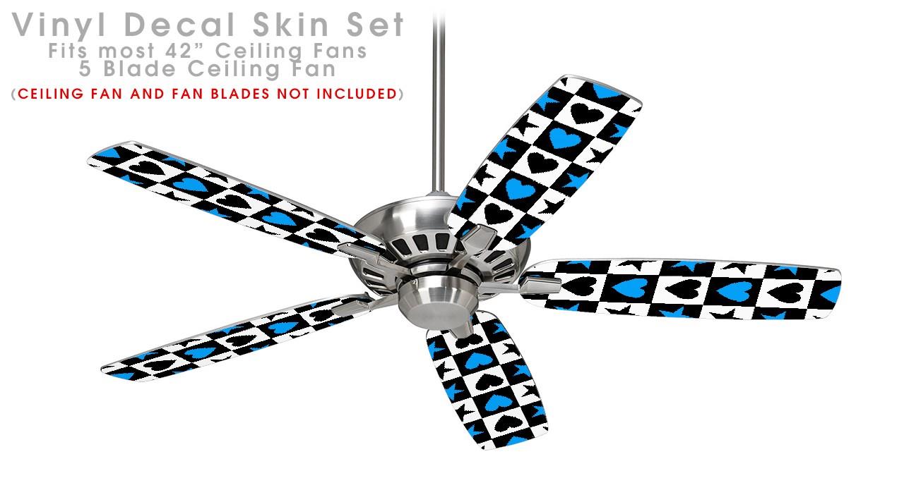 Hearts And Stars Blue - Ceiling Fan Skin Kit fits most 42 inch fans (FAN and BLADES SOLD SEPARATELY)