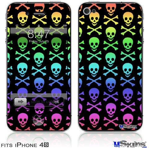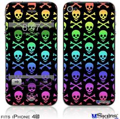 iPhone 4S Decal Style Vinyl Skin - Skull and Crossbones Rainbow
