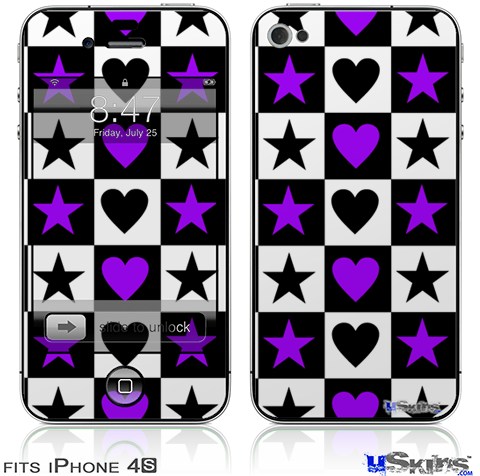 iPhone 4S Decal Style Vinyl Skin - Purple Hearts And Stars