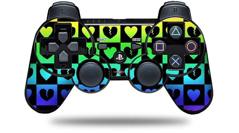 Sony PS3 Controller Decal Style Skin - Love Heart Checkers Rainbow (CONTROLLER NOT INCLUDED)