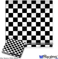Decal Skin compatible with Sony PS3 Slim Checkers White