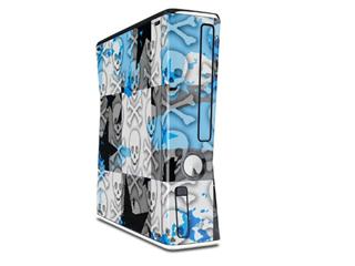 Checker Skull Splatter Blue Decal Style Skin for XBOX 360 Slim Vertical