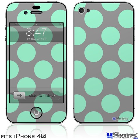 iPhone 4S Decal Style Vinyl Skin - Kearas Polka Dots Mint And Gray