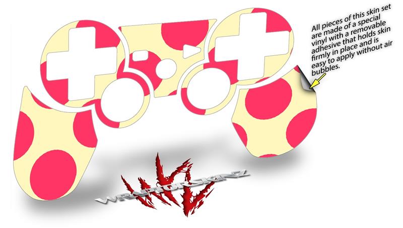 Sony PS3 Controller Decal Style Skin - Kearas Polka Dots Pink On Cream (CONTROLLER NOT INCLUDED)