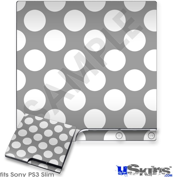 Decal Skin compatible with Sony PS3 Slim Kearas Polka Dots Whtie On Gray