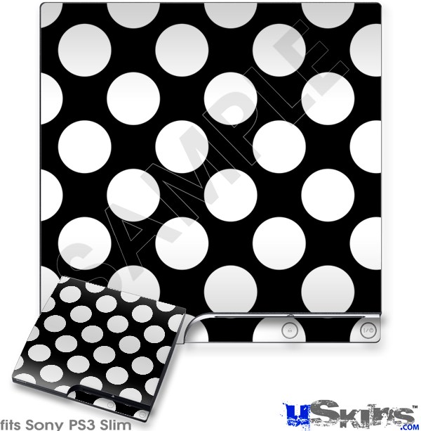 Decal Skin compatible with Sony PS3 Slim Kearas Polka Dots White On Black