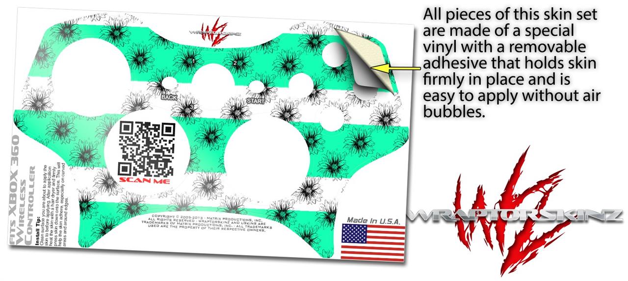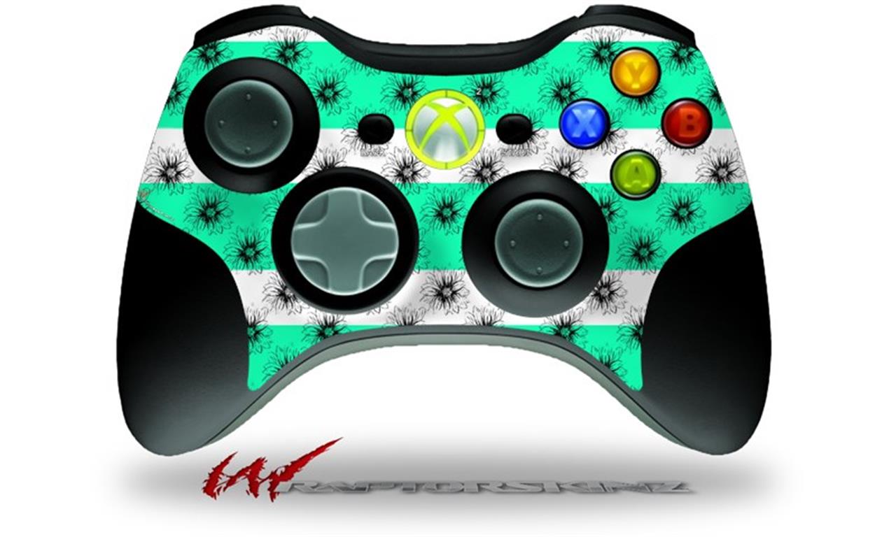 XBOX 360 Wireless Controller Decal Style Skin - Kearas Daisies Stripe Sea Foam (CONTROLLER NOT INCLUDED)
