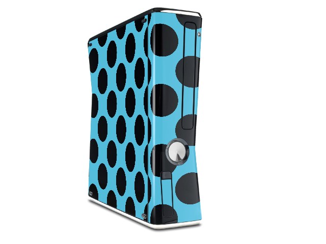Kearas Polka Dots Black And Blue Decal Style Skin for XBOX 360 Slim Vertical