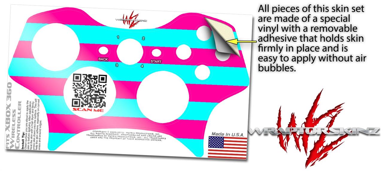 XBOX 360 Wireless Controller Decal Style Skin - Psycho Stripes Neon Teal and Hot Pink (CONTROLLER NOT INCLUDED)