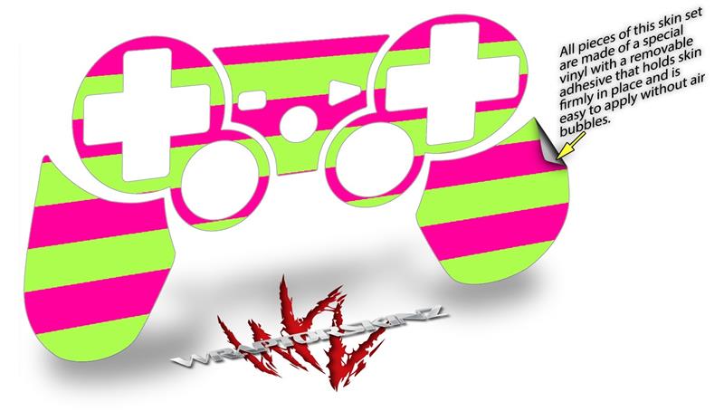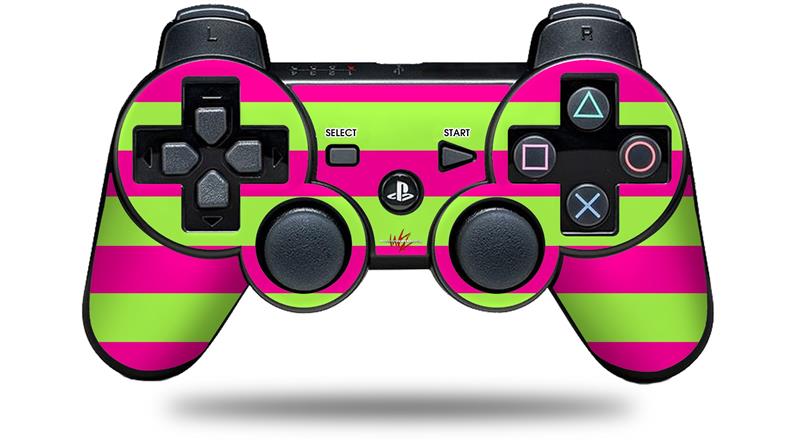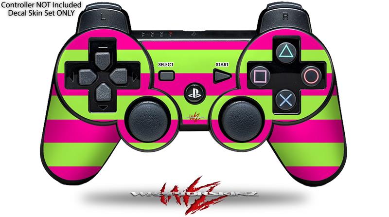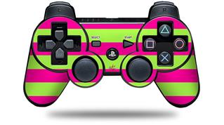 Sony PS3 Controller Decal Style Skin - Psycho Stripes Neon Green and Hot Pink (CONTROLLER NOT INCLUDED)