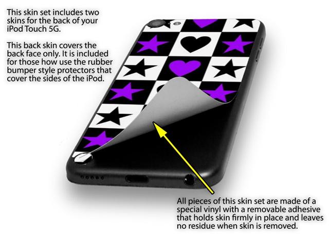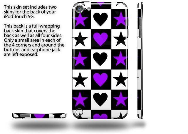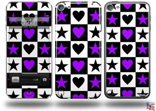 Purple Hearts And Stars Decal Style Vinyl Skin - fits Apple iPod Touch 5G (IPOD NOT INCLUDED)