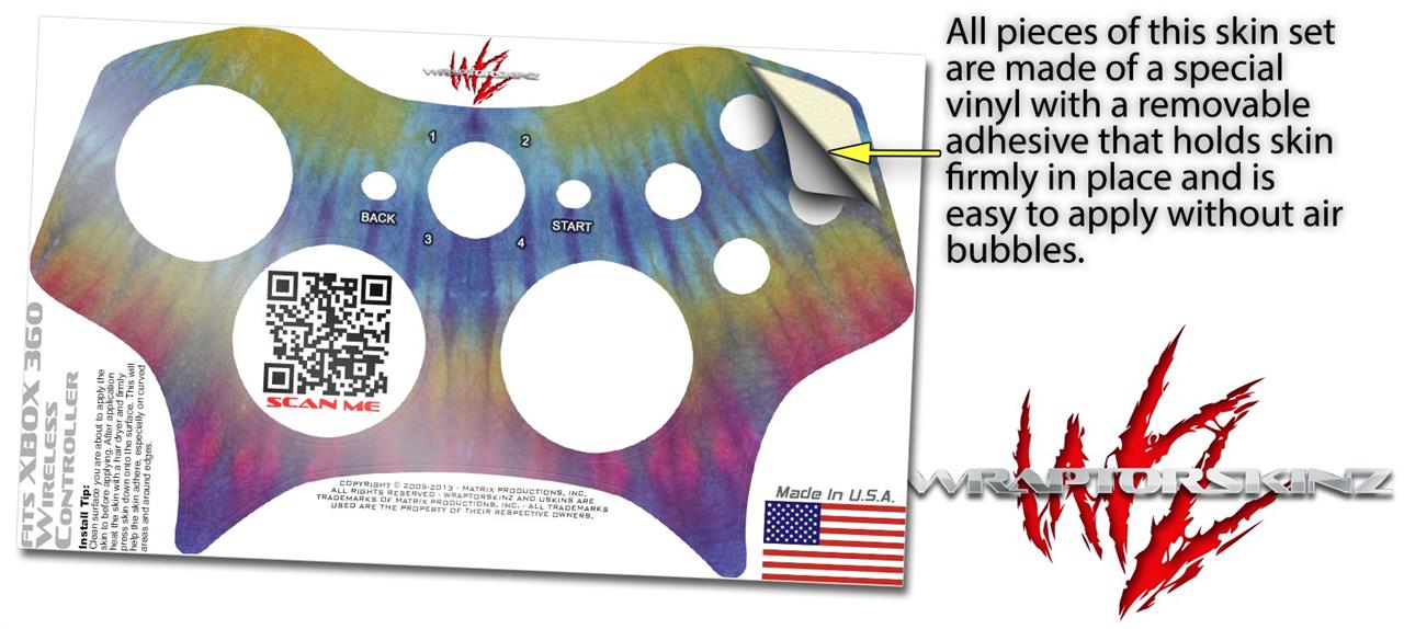 XBOX 360 Wireless Controller Decal Style Skin - Tie Dye Blue and Yellow Stripes (CONTROLLER NOT INCLUDED)