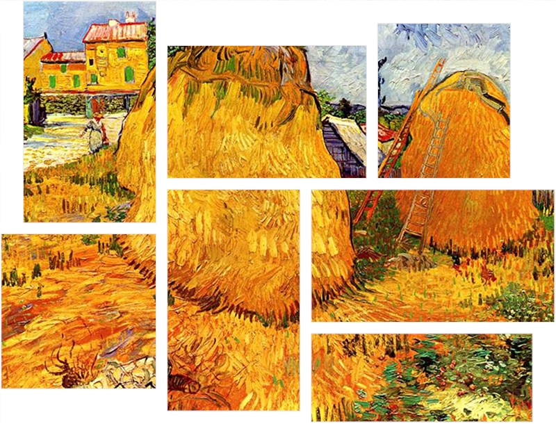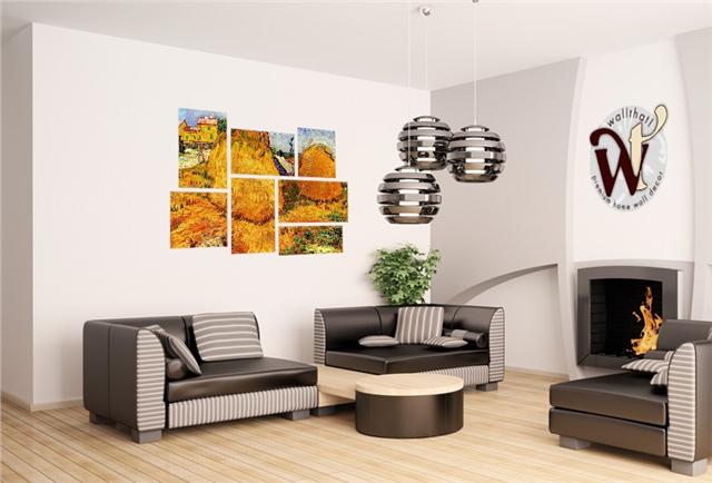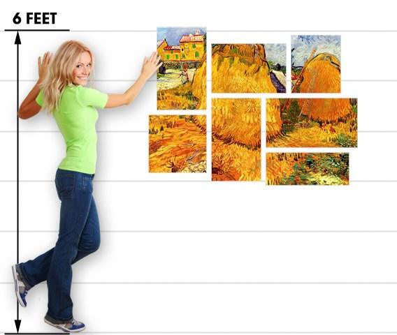 Vincent Van Gogh Haystacks In Provence2 - 7 Piece Fabric Peel and Stick Wall Skin Art (50x38 inches)
