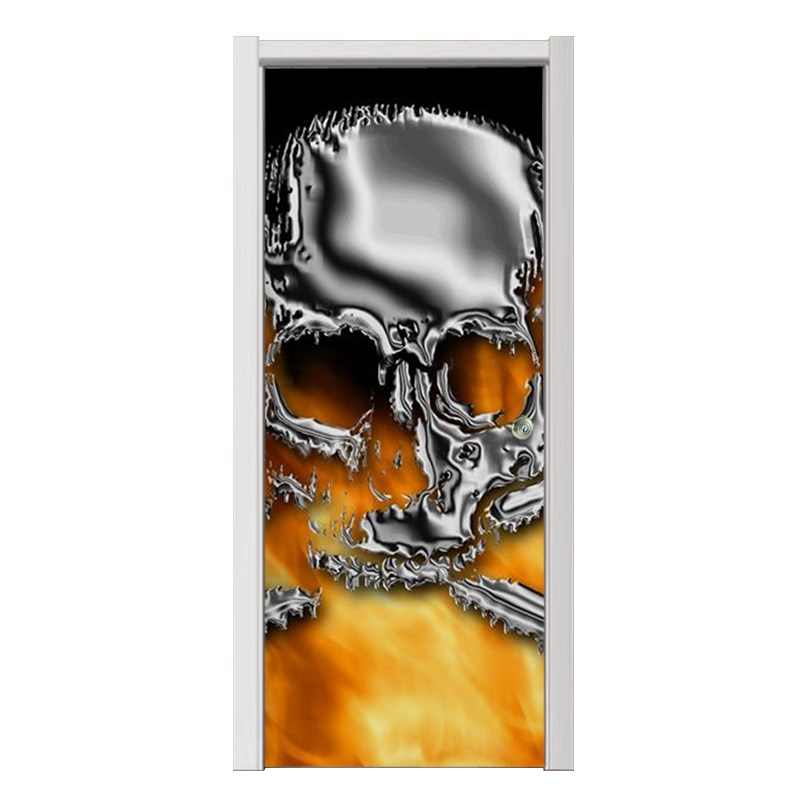 Chrome Skull on Fire Door Skin (fits doors up to 34x84 inches)