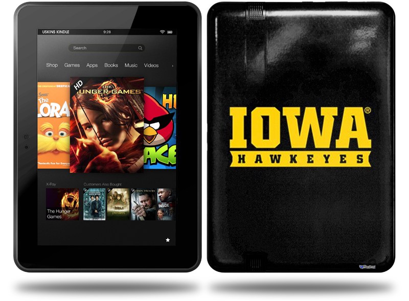 Iowa Hawkeyes 03 Black on Gold Decal Style Skin fits Amazon Kindle Fire HD 8.9 inch
