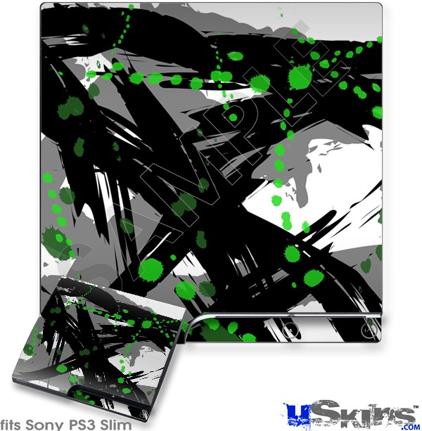 Decal Skin compatible with Sony PS3 Slim Abstract 02 Green