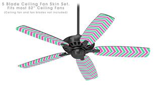 Zig Zag Teal Green and Pink - Ceiling Fan Skin Kit fits most 52 inch fans (FAN and BLADES SOLD SEPARATELY)