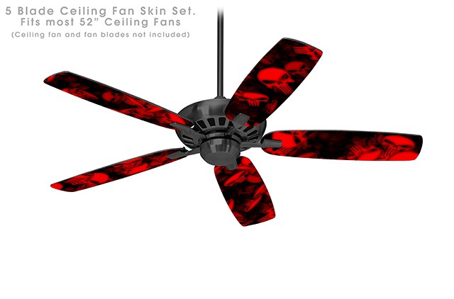 Skulls Confetti Red - Ceiling Fan Skin Kit fits most 52 inch fans (FAN and BLADES SOLD SEPARATELY)