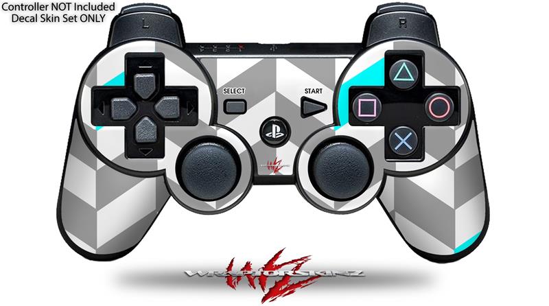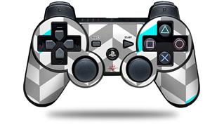 Sony PS3 Controller Decal Style Skin - Chevrons Gray And Aqua (CONTROLLER NOT INCLUDED)