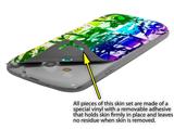 uSkins™ are self adhering vinyl skins that help prevent scratches and look great doing it. Unlike bulky silicon, plastic or metal cases and faceplates, uSkins are designed to be thin and very tough. uSkins are a composite of two layers of commercial grade materials. The bottom layer is a soft, flexible vinyl with a special removable adhesive that is easily positioned, applied without air bubbles, and effortlessly removed without leaving a sticky residue. Next we print the bottom layer with UV protected, fade resistant inks that deliver superb photo quality designs in vibrant colors. Finally we bond a professional grade laminate over the entire skin adding a glossy protective finish.